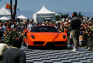 This is a brand new Ferrari Enzo supercar painted in... Orange. Why Orange? The owner also owns the "Ferrari of Orange County" dealership in Costa Mesa, California: