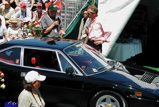 I was allowed to drive my GT4 up on to the main stage, where Keith Martin (green hat) and Keith Bluemel (pink shirt) explained the history of each car that drove up. I got a round of applause from the crowd, when I mentioned I drove my car all the way down from Canada! For those of you who don't know, Mr. Martin publishes the magazine: "Sports Car Market" (and used to host the annual Barrett-Jackson classic car auction for SpeedTV network) and Mr. Bluemel is a noted Ferrari expert and author.