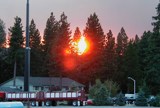 Weed CA. makes a nice half-way stopping point, between Vancouver and Monterey. It's located close to the northern border of California. Just south of Weed is the town of Mt. Shasta, which gets its name from the neighboring mountain. When we arrived, this area was experiencing terrible forest fires, with the plumes of smoke filling the southwest skyline... Which happened to make the setting sun glow with brilliant intensity: